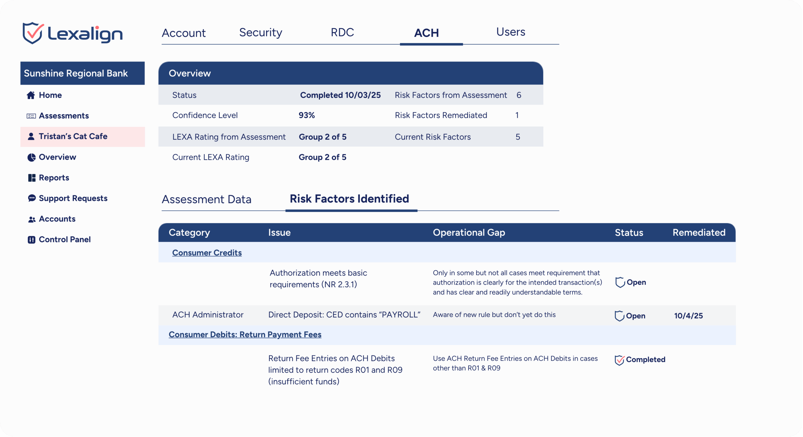 LexAlign identifies rules & risks specific to the customer and assesses their compliance and ability to manage the risks with actionable tasks.